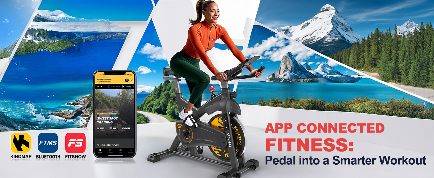 • Smart connectivity: Thanks to the Bluetooth connection and the integration with the app, your workout with this exercise bike will be even more varied. With the KINOMAP app you can easily choose different driving scenarios and enjoy a personalized driving experience. Whether it's city trips or outdoor adventures, real-time data monitoring and intelligent resistance adjustment make every workout more efficient and healthy. In addition, the social function of the app offers the ability to share your rides with friends to increase the fun of training.